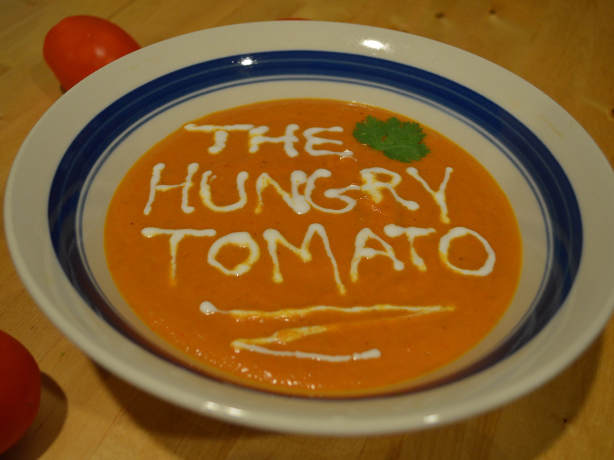 A few weeks ago, my mom and I spent an afternoon at this cute little British tea room in our town. We ordered a few soups, some sandwiches, and a variety of tea. Turns out, the soup of the day was this delectable coconut curry based tomato soup. The coconut and curry combination reminded me of typical South Indian fare. However, despite being an Indian myself, I had never really tasted the three together. I was pleasantly surprised at how well all three flavors complemented each other and knew I had to attempt to re-create it. Although I am not sure of the exact ingredients in that soup, the recipe below is a product of my imagination (and of hours I’ve spent trying to relive the sensory overload of that first bite). Not gonna lie, I think I came pretty close! Oh, and I had a little (too much) fun garnishing as well 🙂