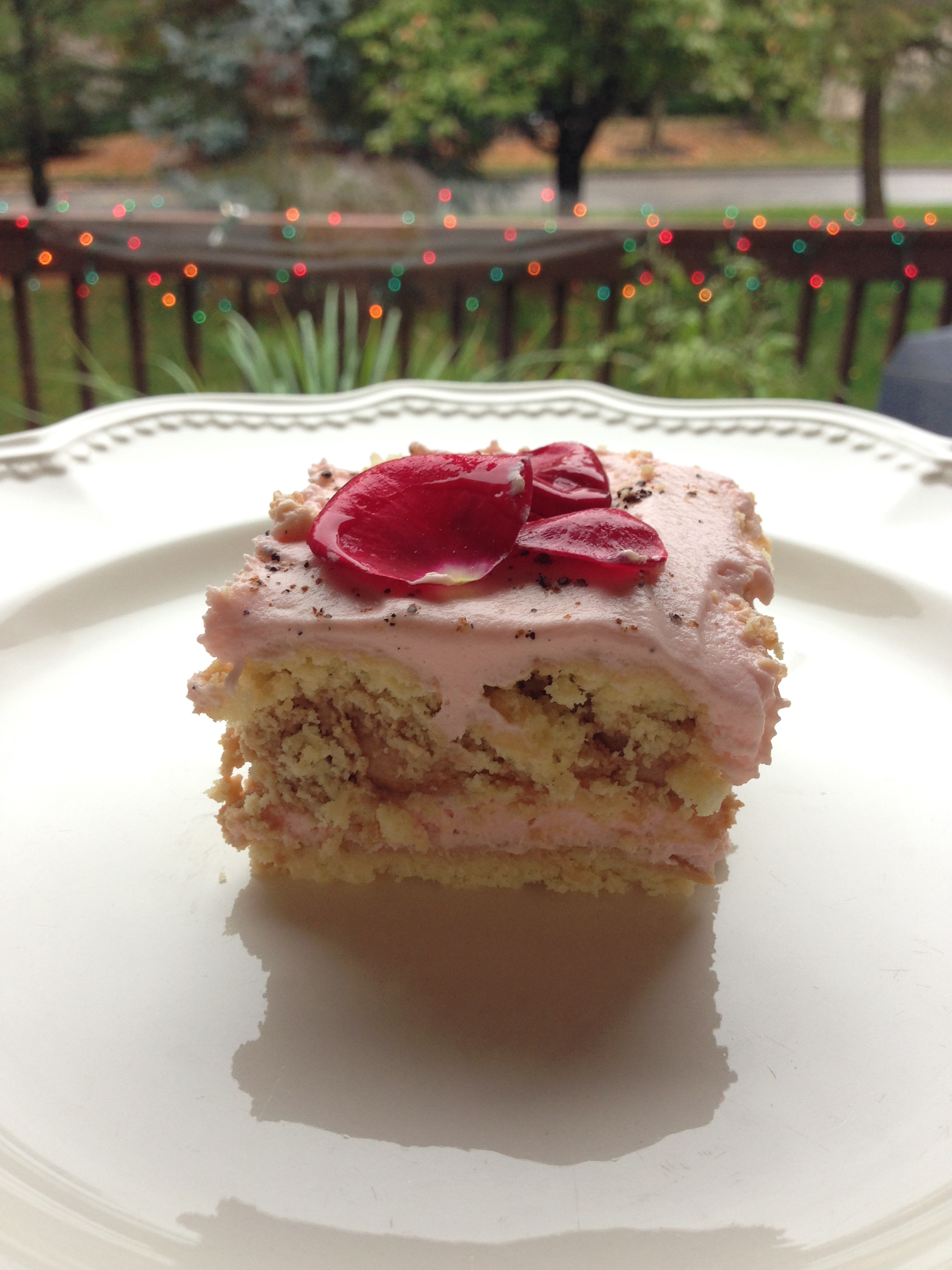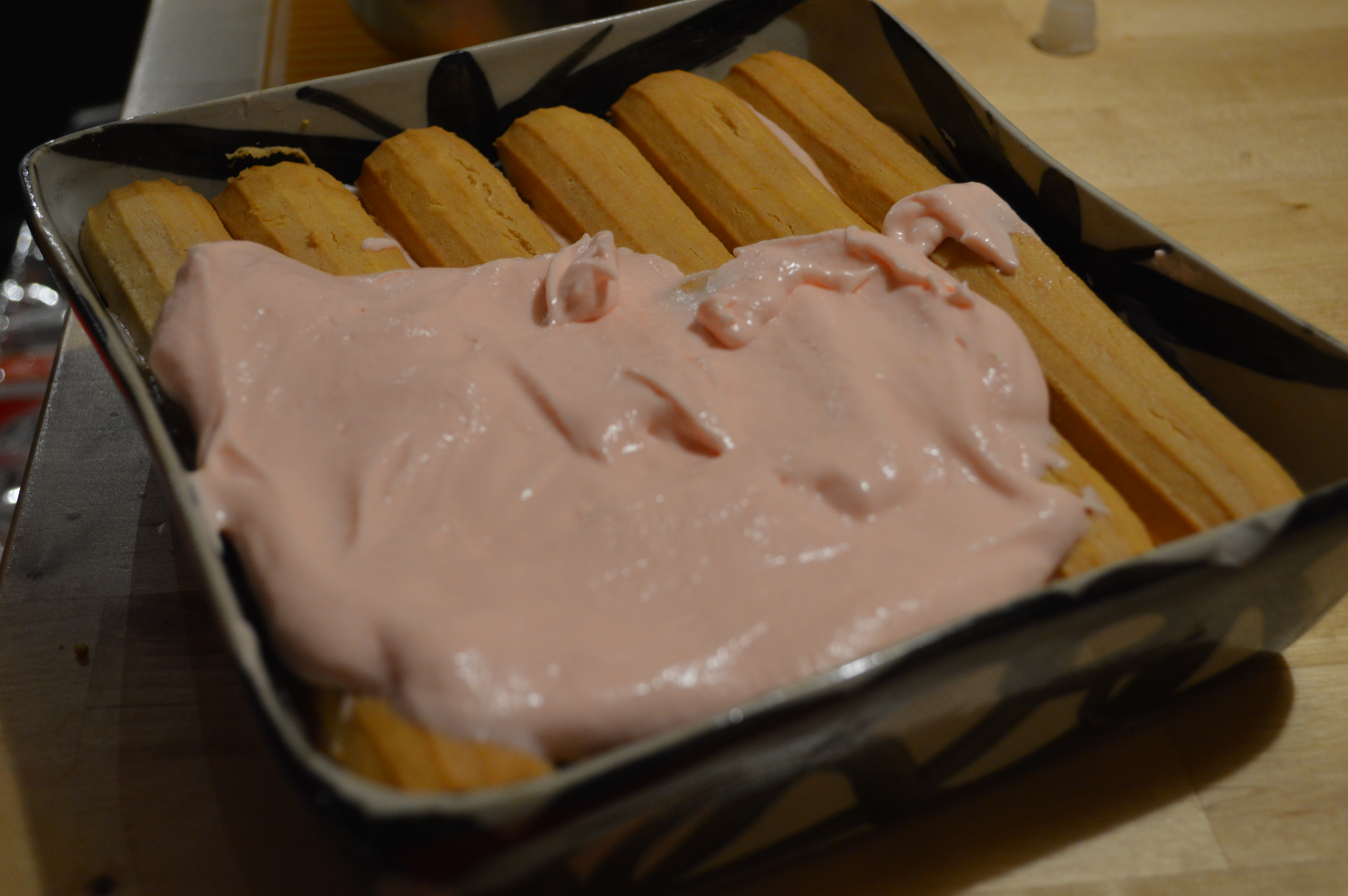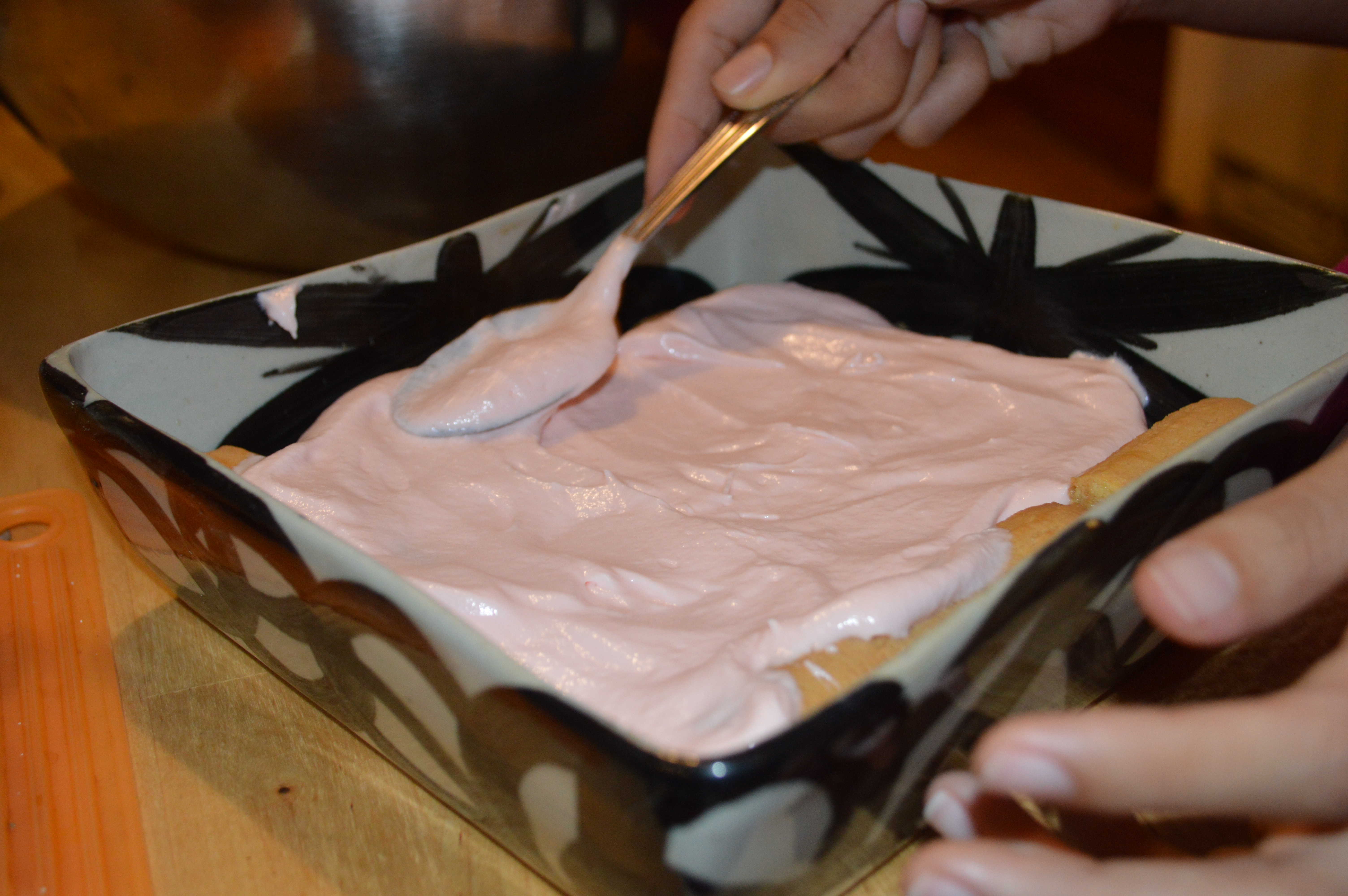 – Spread the other half of your rose créme evenly over second layer of chai dipped cookies
