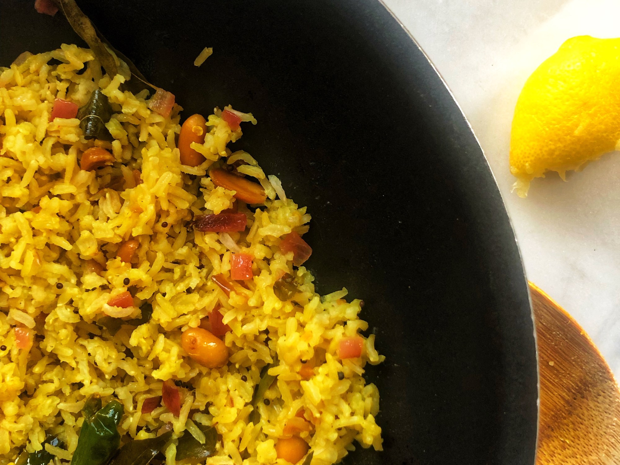 This was such an easy and quick dinner! It took just under 30 minutes (Including prep time!). Perfect for nights when you are lacking motivation to cook or are simply bored of everything else. What I love about this lemon rice is that it is so light on the masalas. Sometimes in Indian households, we tend to overkill with the spices which often diverts from how amazingly simple, yet delicious, Indian food can be.